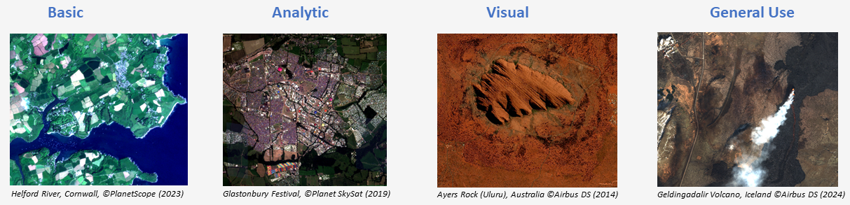 A simple map accurate image analogous to an aerial photo. Immediately recognisable, with no specialist EO data expertise. Natural colour, 8-bit RGB image - should be opened by any system - just like a consumer digital camera image, only georeferenced. Orthorectified, pansharpened, natural colour. Suitable for visual mapping applications, image backing for GIS applications, AI computer vision analysis - training and deployment. Suitable for all users.