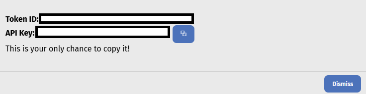 Copy the Token ID and API Key, these will not be available to view later. These API tokens will be used to authenticate your workspace with external and internal services within the platform.