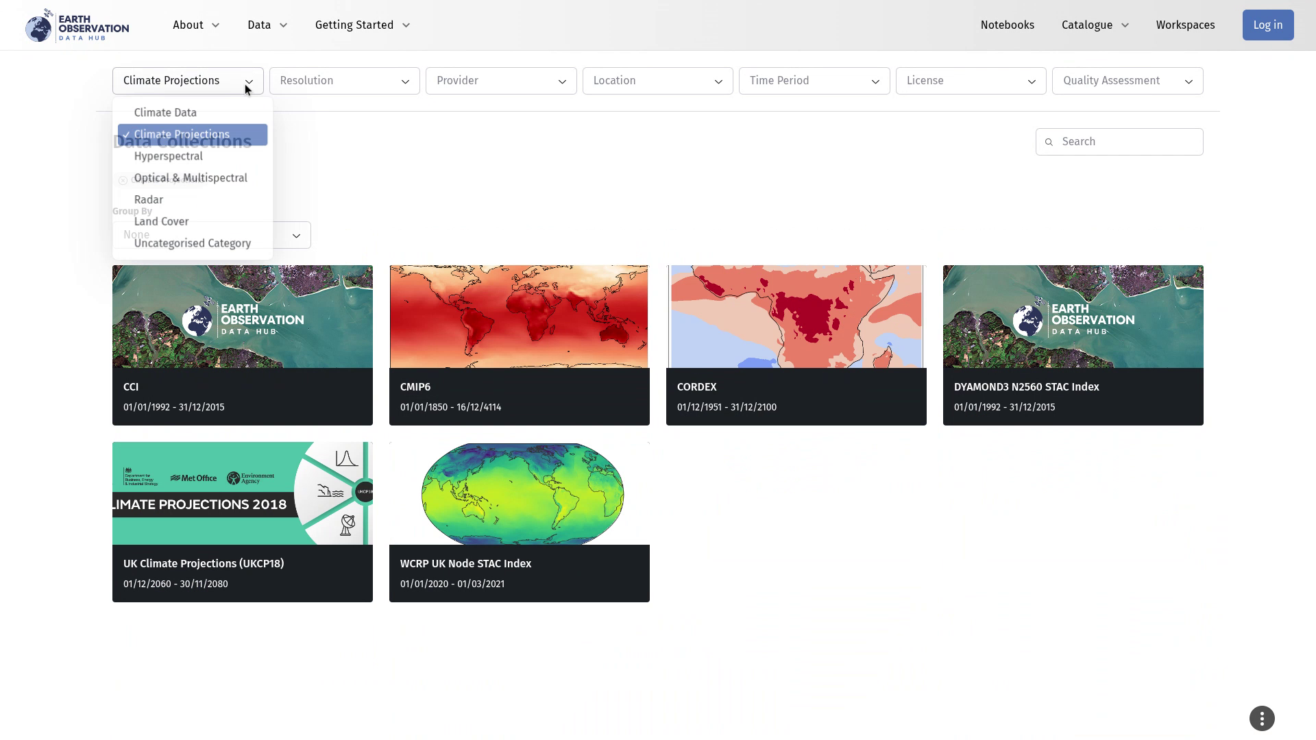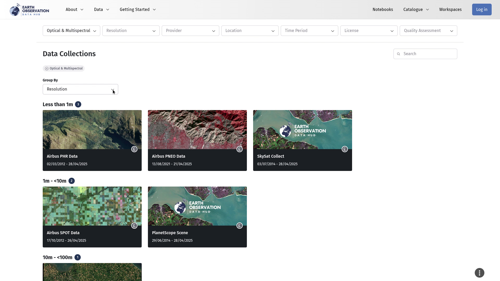 The Resource Catalogue provides a user-friendly interface for discovering and accessing Earth Observation data. This guide walks through the basic features of the catalogue's browse page and how to use its filtering and search capabilities.