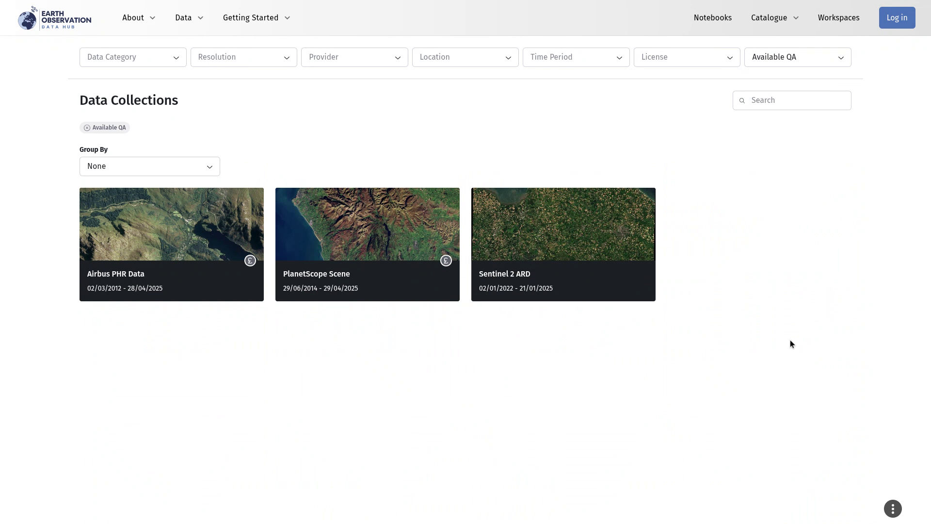 - Select "Available QA" to see collections with QA data