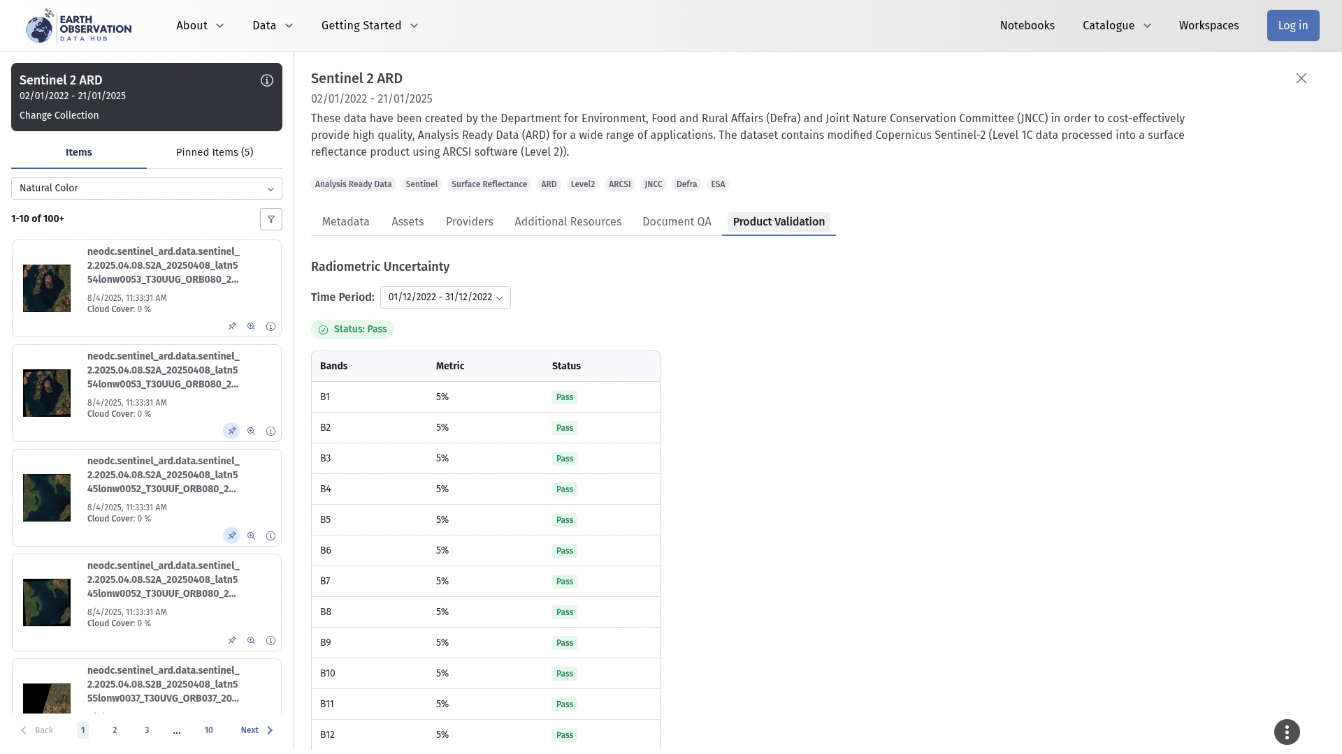 The QA system is evolving. Currently, the scope of the QA assessment on the Hub focuses on quantifying radiometric uncertainty. Additional QA metrics will be added in the future, and new validation methods may be introduced.