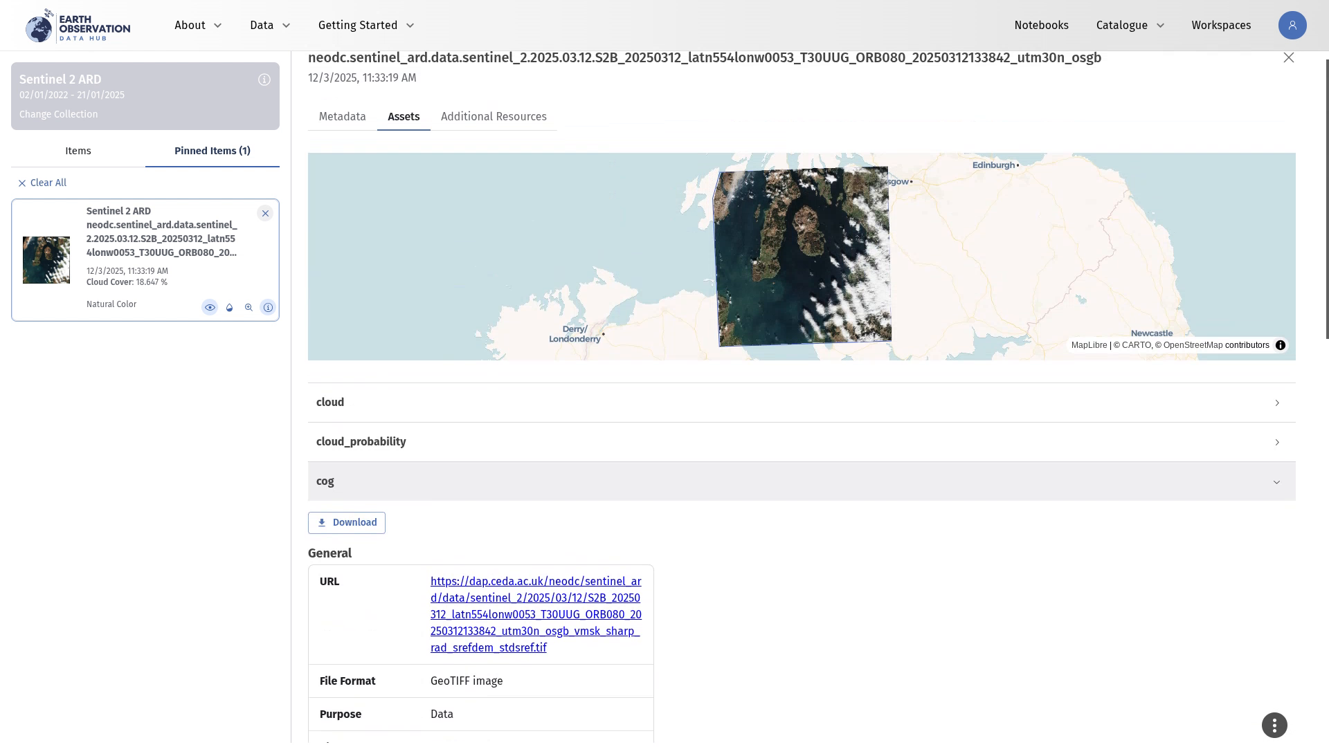 - Look for the "cog" (Cloud-Optimized GeoTIFF) asset