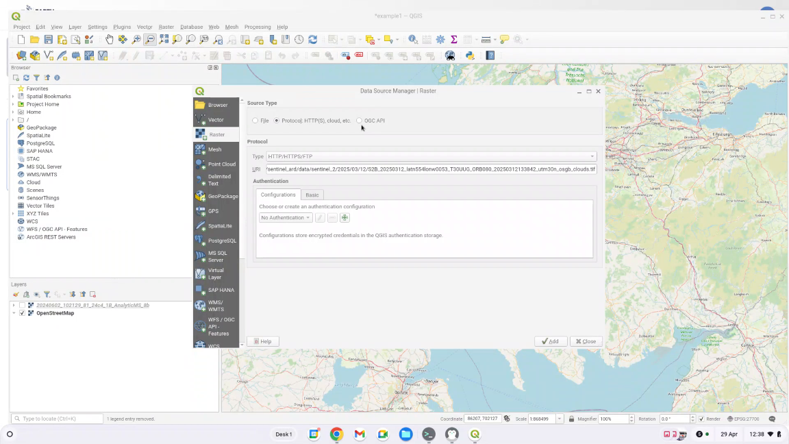 - In the "Source" section, select "Protocol" as the source type. Paste the COG URL you copied, and click "Add"