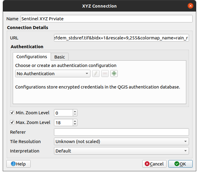 You can add layers from the EO DataHub directly into QGIS. For public raster data, we recommend using the WMTS endpoint when available. For individual files, you can use an XYZ Tile connection.